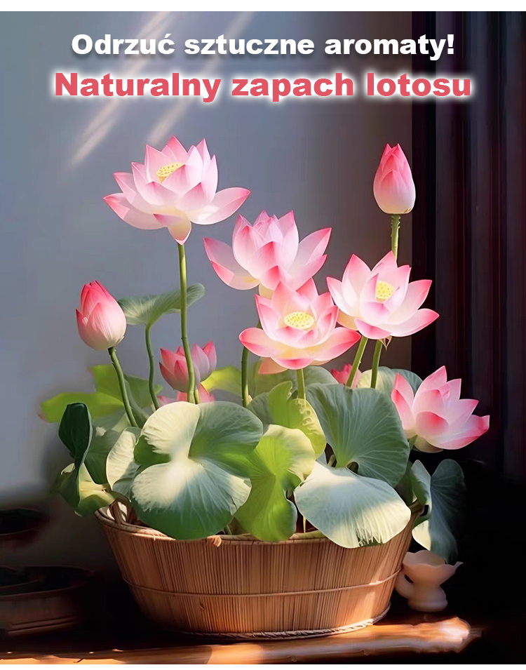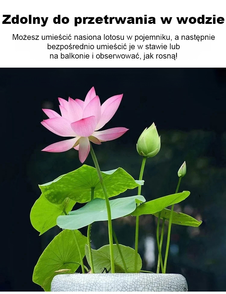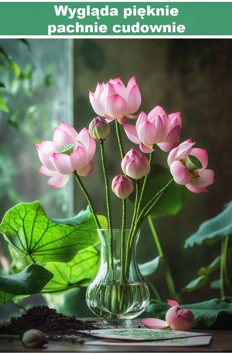 Lotos, który rośnie wyłącznie w wodzie! 🌊 Kwitnie w ciągu 15 dni od aktywacji nasion, a okres kwitnienia trwa ponad dwieście dni. 🌸 Dodaje koloru Twojemu domowi podczas najzimniejszych miesięcy zimowych. Rozkwita nawet podczas surowych zim, wytrzymując temperatury do -20°C. Jego delikatny zapach wypełnia całe pomieszczenie, dzięki czemu jest naturalnym oczyszczaczem powietrza. 🍃