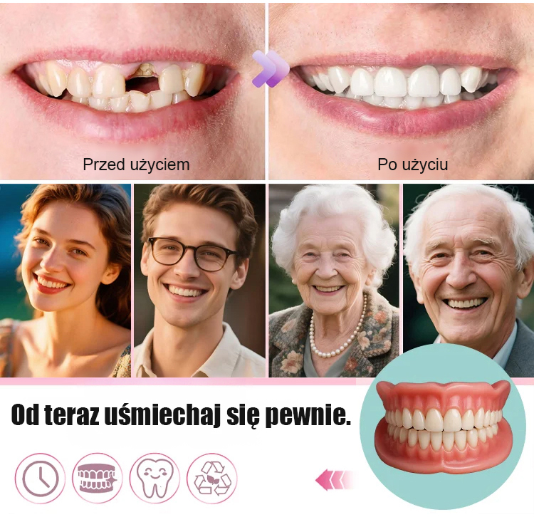 【Koniec z Drogimi Implantami】Rewolucyjne Protezy Silikonowe | Certyfikat Międzynarodowy | Uśmiech w 1 Sekundę | 1+1 GRATIS dla Pierwszych 80 Osób | Zwrot 10x ✨